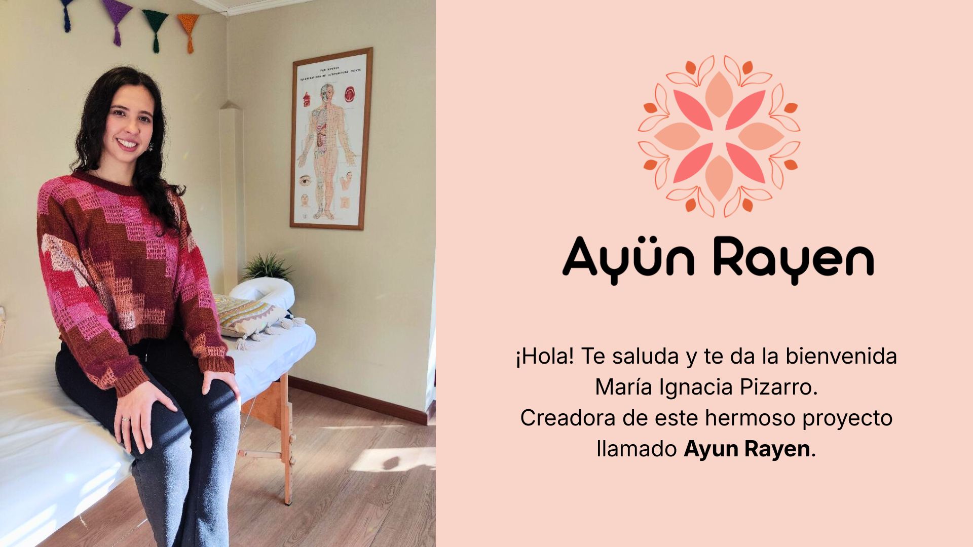 Hola te saluda y te da bienvenida Maria Ignacia Pizarro, creadora de este hermoso proyecto llamado Ayün Rayen.